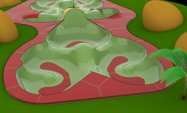Thanks to Billy Coulon of Evergreen Skateparks for inspiring me to design this clover. I call it the “Sell-out Clover” because it has decks and flat bottom and is not connected to the rest of the park. It can be skated as a separate session. It’s a compromise between flow and traffic management. Any compromise is selling out.